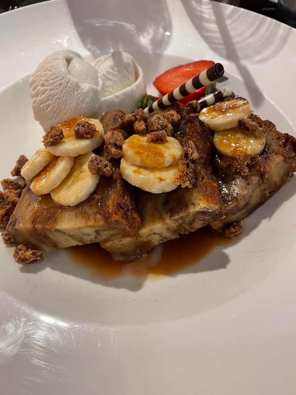 with a breakfast sandwich. It was nice to have a trusted option in the morning which then allowed me to be more adventurous as the day went on. Before touring the Hard Rock Hotel, we stopped for a group lunch in one of their restaurants, The Kitchen. I enjoyed a chopped salad and bread pudding. Both of these were HUGE portions with great flavors. Honestly can say that this was the best bread pudding I've had in my 30 years of life.